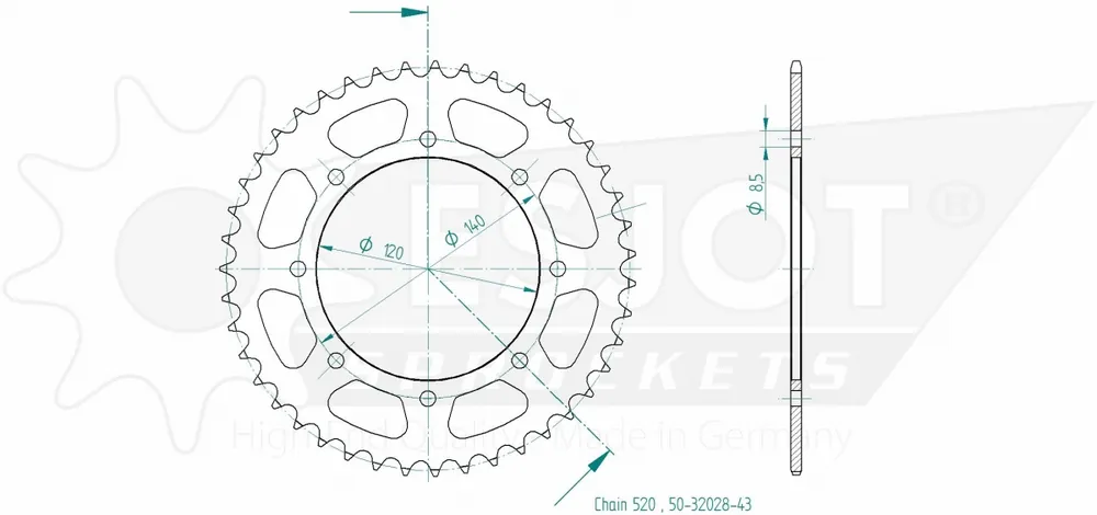 Controleer de specificaties van je huidige sprocket en vergelijk deze met de 43T tandconfiguratie en 520 kettingcompatibiliteit van de ESJOT sprocket.