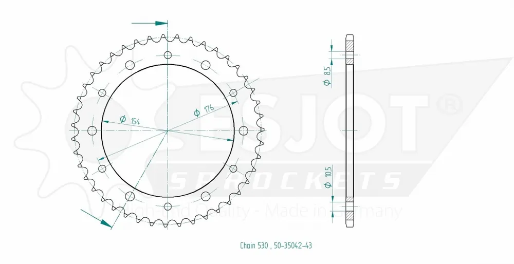 De ESJOT REAR STEEL 43T, 530 sprocket levert niet alleen kracht en prestaties, maar ook een geweldige prijs-kwaliteitverhouding. Door het gebruik van kwaliteitsmaterialen ben je verzekerd van een product dat zijn werk doet, zelfs onder zware omstandigheden. Dit onderdeel is ideaal voor zowel recreatieve als dagelijkse rijders die hun voertuig willen voorzien van betrouwbare onderdelen.