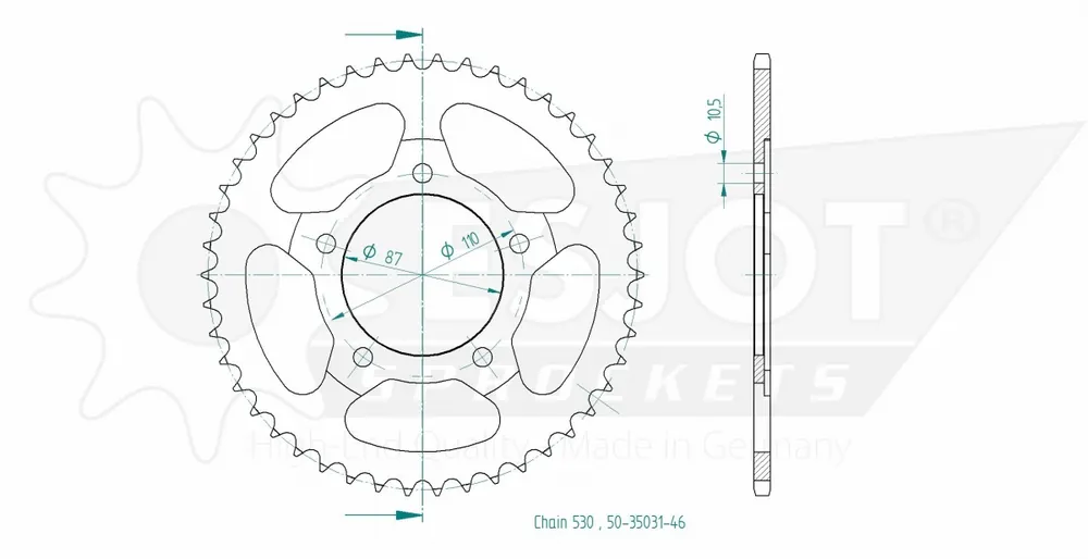 ESJOT – REAR STEEL 46T, 530 – Sprockets – Hoge kwaliteit en compatibiliteit Lage Kosten