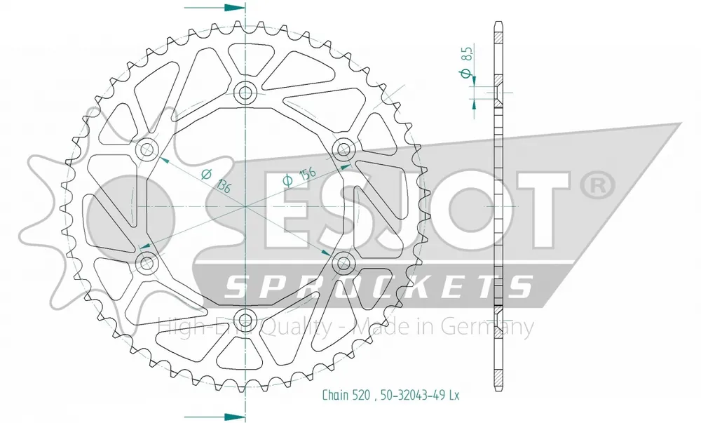 De ESJOT REAR STEEL LIGHT 49T, 520 is een hoogwaardige sprocket die ontworpen is voor een optimale prestatie van je motor of scooter. Met een tandwielverhouding van 49 tanden biedt deze sprocket een uitstekende combinatie van kracht en snelheid. Het vervaardigen van deze sprocket uit staal zorgt voor een sterke en duurzame constructie, die bestand is tegen de dagelijkse slijtage en de uitdagingen van het rijden.