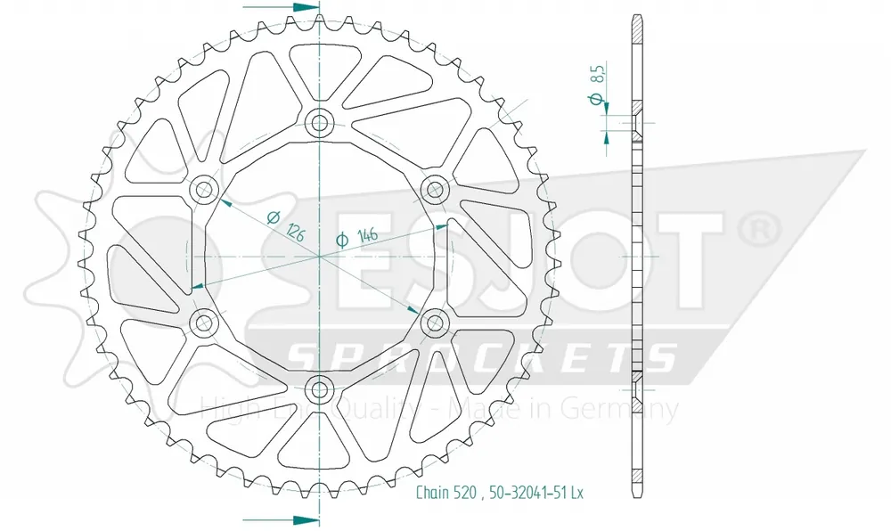 De ESJOT REAR STEEL LIGHT 51T, 520 is een hoogwaardige achtertandwiel die speciaal is ontworpen voor verschillende modellen van Suzuki, waaronder de populaire Dr 350 en Drz 400 series. Dit product valt onder de categorie sprockets en biedt de perfecte combinatie van kracht en prestaties.