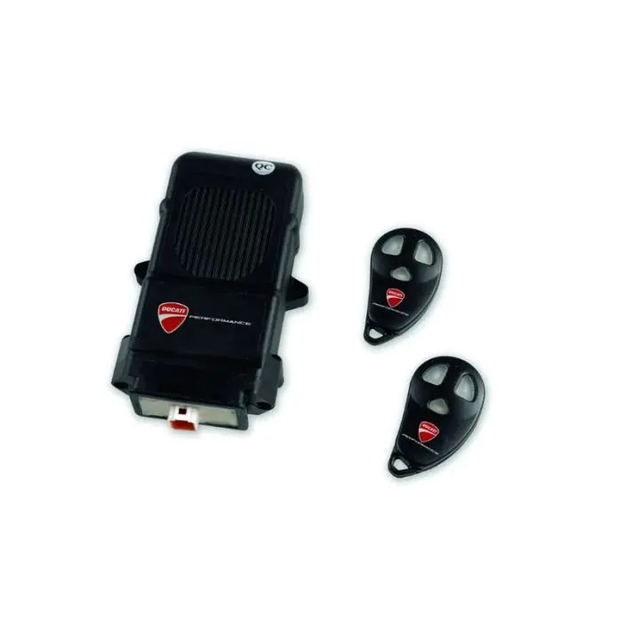 Dit Ducati anti-diefstalpakket bestaat uit een hoorbaar alarm en afstandsbediening. Het alarm gaat af wanneer de motor wordt verplaats, opgetild, of wanneer er mee wordt gerommeld.
