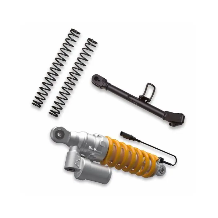 Speciaal ontworpen set om de fiets 20 mm te verlagen, bestaande uit vorkveren, complete achterschokdemper en zijstandaard. De perfecte accessoireset voor maximaal comfort zonder dat dit ten koste gaat van het rijplezier en om te genieten van een avontuur op maat op de Multistrada V4 Rally.