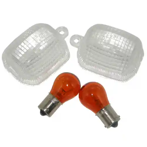 Deze set bestaat uit twee stuks indicator lenzen, compleet met twee amber bulbs. Dit maakt de installatie eenvoudig en direct gebruiksklaar. De amber bulbs zorgen voor een optimale zichtbaarheid, zodat andere weggebruikers altijd op de hoogte zijn van jouw richting. De lenzen zijn vervaardigd uit duurzaam materiaal, wat bijdraagt aan een lange levensduur.