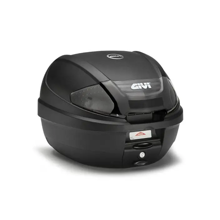 Bij het creëren van de GIVI E300 topkoffer heeft GIVI ook de nodige aandacht geschonken aan de vormgeving. Neem bijvoorbeeld zijn aerodynamische en scherpe vorm. Dit zorgt ervoor dat de topkoffer niet misstaat op jouw scherp vormgegeven motor of motorscooter. Daarbovenop is de E300 topkoffer ook stijlvol. De matzwarte kleur en smoked reflectoren aan de bovenzijde van de topkoffer onderstrepen dat.Tevens is de E300 ook leverbaar met een Rode reflector. Al met al is de GIVI E300 een stijlvolle topkoffer die niet zal misstaan op uw motorfiets of motorscooter.
