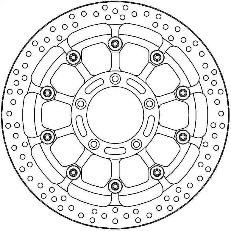 De MOTO MASTER HALO T-FLOATER ALU DISC 320 is een hoogwaardige remschijf, speciaal ontworpen voor racegebruik. Met een dikte van 7.1 mm biedt deze disc uitstekende remprestaties en betrouwbaarheid onder de meest extreme omstandigheden. De combinatie van aluminium en innovatieve technologie zorgt ervoor dat je de controle behoudt, zelfs bij hoge snelheden.