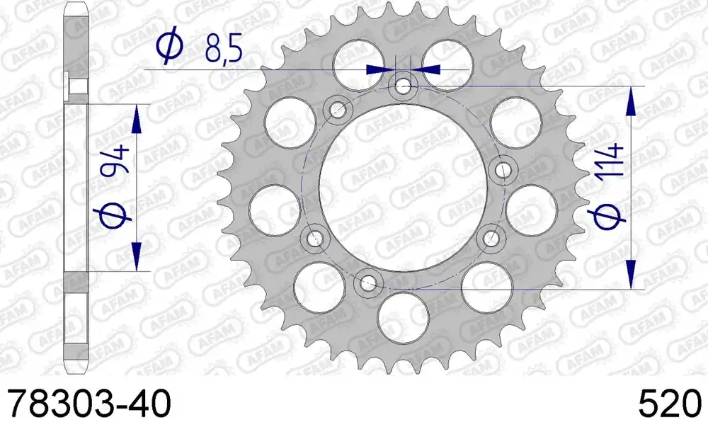 De AFAM REAR ALU 40T, 520 is ontworpen voor gebruik met een 520 ketting. Het is een veelzijdige sprocket, maar het is belangrijk om te controleren of jouw motor compatibel is met deze specificaties.