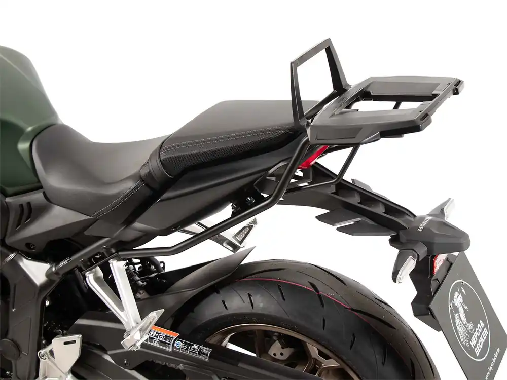 Zeer stabiele drager voor topkoffer van Hepco & Becker vervaardigd uit hoogwaardig aluminium in de kleur zwart met vaste beugel.