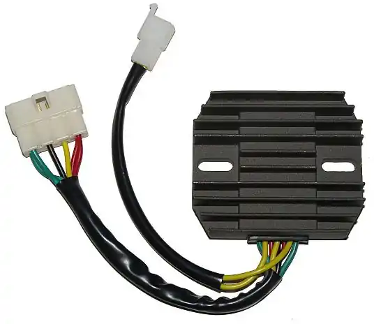 Een voltage regulator zorgt ervoor dat de spanning van de accu constant blijft, wat essentieel is voor de goede werking van de elektrische systemen in je motor.