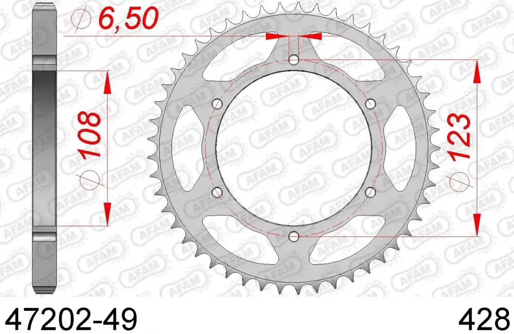De AFAM REAR STEEL 49T, 428 sprocket is ontworpen zonder specifieke merk- of modelcompatibiliteit. Het is belangrijk om de specificaties van je huidige sprocket te vergelijken met deze om te zien of deze past.