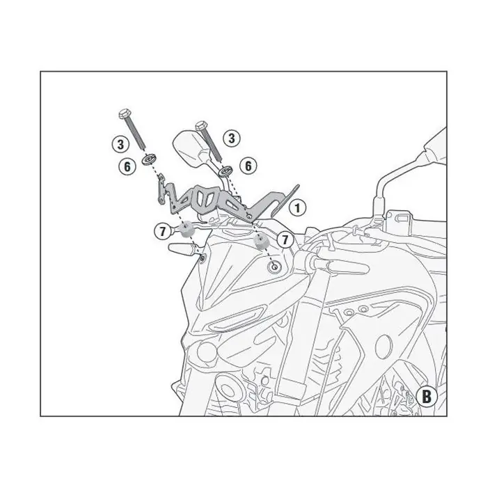 Deze Givi referentie is enkel en alleen een montagekit. Deze montagekit is niet universeel en enkel geschikt voor de montage van een specifiek windscherm op een specifiek voertuig.