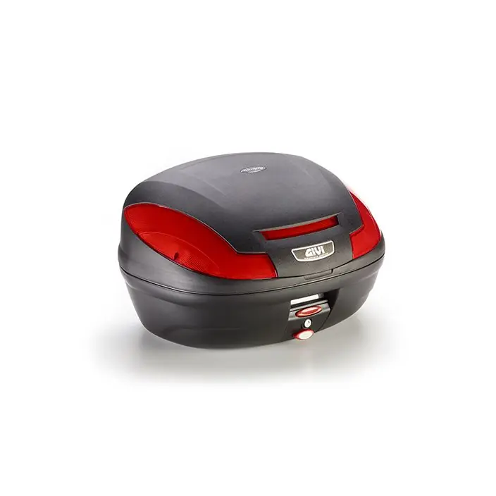 Deze topkoffer is niet alleen praktisch in gebruik, maar ook mooi van vormgeving. De koffer is in een matzwarte kleur, daarbovenop verfraaid met rode reflectoren. Mocht het rode niet uw smaak zijn, dan kunt u er ook voor kiezen om de topkoffer aan te schaffen met smoked kleurdelen. Hoe dan ook heeft u aan de GIVI E470 topkoffer een strakke en moderne koffer die goed zal passen op uw motorfiets.