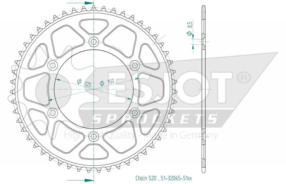 Gratis Retour ESJOT – REAR ALU 51T, 520 – Sprockets – 51T Aluminium