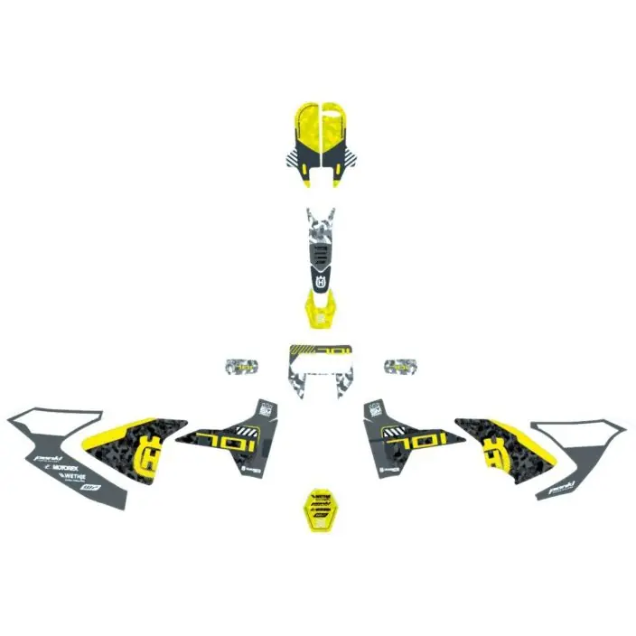 Ontworpen om het uiterlijk van jemotor volledig te veranderen. Kleef de grafische kit rechtstreeks op de standaard kuipdelen. Kan worden verwijderd zonder resten achter te laten. Gemaakt van materialen van de hoogste kwaliteit. Visueel verbluffend en perfecte pasvorm.