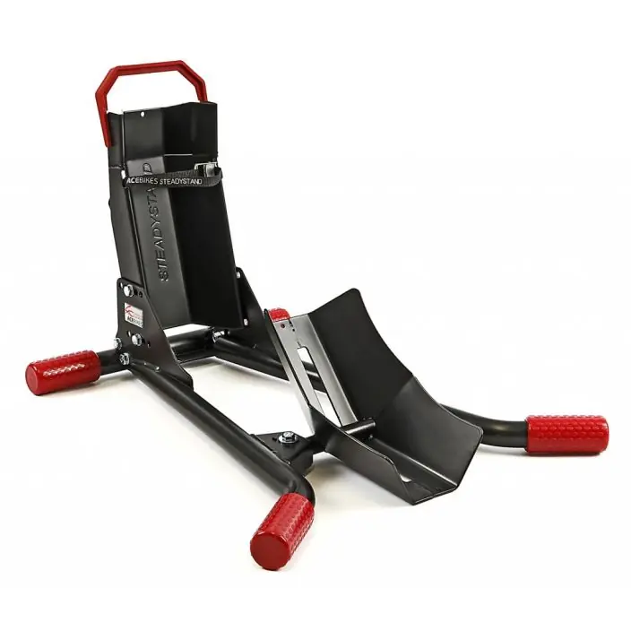 Zeer praktische wielklem gemaakt door Ace Bikes. Goed geschikt tijdens het vervoeren of stallen van de motor. Voorzien van een speciale anti-slip voor, zodat de standaard niet zomaar verschuift.