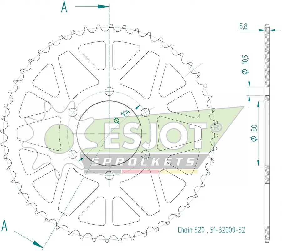 De ESJOT REAR ALU 52T, 520 is een hoogwaardige sprocket die speciaal is ontworpen voor motoren en scooters. Met een tandwielverhouding van 52 tanden biedt deze sprocket uitstekende prestaties en een verhoogde acceleratie. Door het gebruik van lichtgewicht aluminium is deze sprocket niet alleen sterk, maar ook duurzaam, wat bijdraagt aan een langere levensduur van je voertuig.