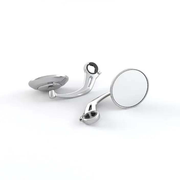 Een ronde, op het stuureinde gemonteerde spiegel, op beide handgrepen te monteren. Wordt per paar verkocht.
