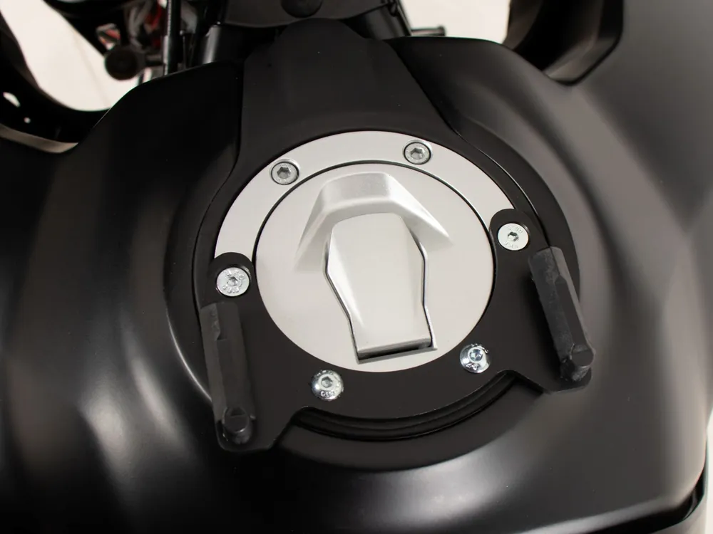 -de Hepco & becker tanktas wordt eenvoudig op de tankring geplaatst en vergrendelt hoorbaar, dankzij een slim mechanisme.