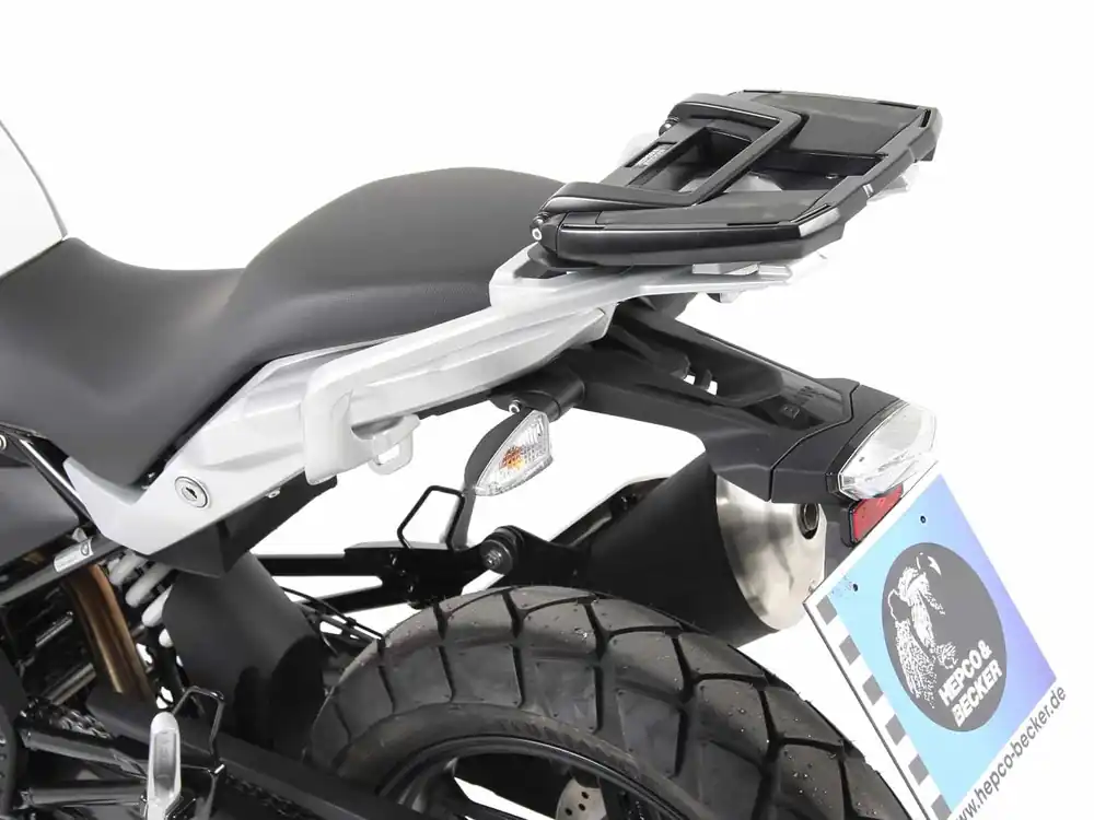 Zeer stabiele drager voor topkoffer van Hepco & Becker vervaardigd uit hoogwaardig aluminium in de kleur zwart met klapbare beugel.