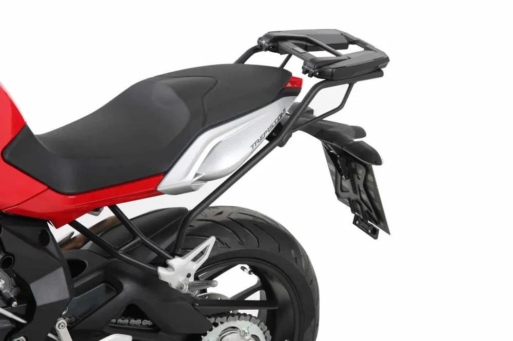 Zeer stabiele drager met klapbare opstaande beugel voor topkoffer van Hepco & Becker vervaardigd uit hoogwaardig aluminium in de kleur zwart.