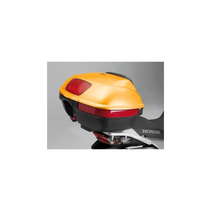 Inhoud 45L. Genoeg ruimte voor twee integraal helmen.De top box heeft een snel sluit systeem. Inclusief rugkussen. Y-200P Amber Yellow (Geel).