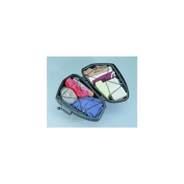 Elastische banden helpen de bagage binnen in de zijkoffer vast te houden. Inclusief een centrale haak en 4 haken voor veilig vastbinden. Set voor 1 zijkoffer (2 banden).