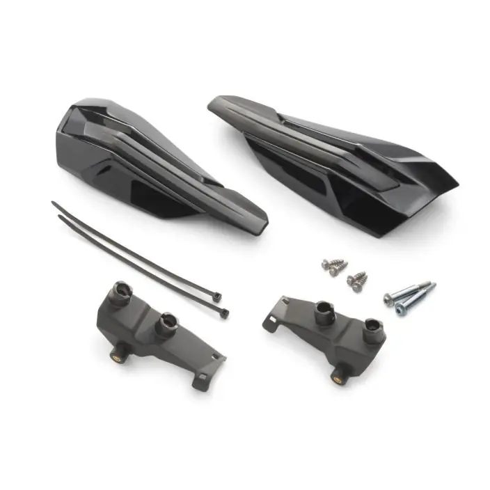 Compromisloze race-look. Extreem lichtgewicht. Openontwerp. 2-componenten kunststof handbescherming. Zwart middenstuk maximale stevigheid voor optimale bescherming en gekleurde boven- en onderdelen zeer flexibel onder de zwaarste omstandigheden. Montage niet mogelijk met Twinwall stuur. Bevestiging direct aan de hendels met speciale bevestiging. Alleen monteerbaar met Braktec remsysteem