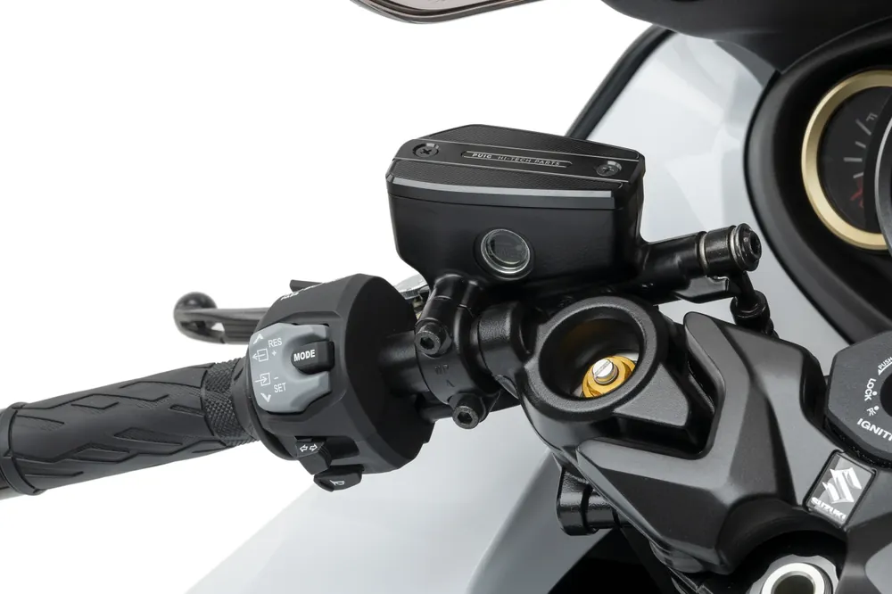 Puig remvloeistofreservoir deksel voor de voorrem vervaardigd uit massief aluminium en leverbaar in diverse kleuren.