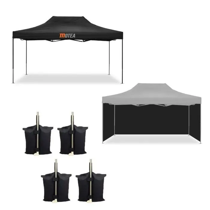 - Set bestaande uit opvouwbaar paviljoen 3×4,5m, 4 zijwanden voor racetenten van 3×4,5m, paviljoengewichten
