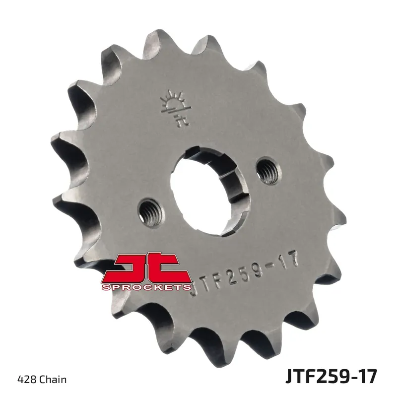 De JT SPROCKETS FRONT STEEL 17T, 428 is een algemeen tandwiel zonder specifieke merkaanpassingen. Het is dus belangrijk om te controleren of de tandverhouding en kettingmaat passen bij jouw voertuig.