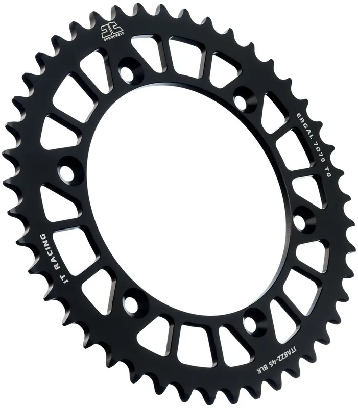 De REAR RACELITE ALU 45T BLACK van JT SPROCKETS is een hoogwaardige achtertandwiel, speciaal ontworpen voor prestaties en duurzaamheid. Dit sprocket is uitgevoerd in een stijlvolle zwarte kleur en heeft een tandenaantal van 45, wat bijdraagt aan een optimale versnelling en rijervaring.