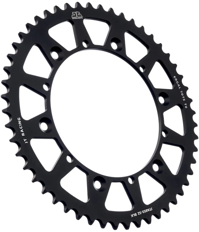 De JT SPROCKETS REAR RACELITE ALU 52T BLACK, 520 is een hoogwaardige achtertandwiel die speciaal ontworpen is voor motoren en scooters die op zoek zijn naar een prestatieverbetering. Dit sprocket is vervaardigd uit lichtgewicht aluminium, wat bijdraagt aan een lager totaalgewicht van je voertuig en een snellere acceleratie mogelijk maakt.