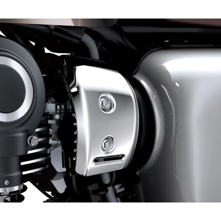 Verchroomde cover voor brandstof injectie Kawasaki W800. Wordt verkocht per zijde afzonderlijk verkocht. Dit betreft de linker zijde.
