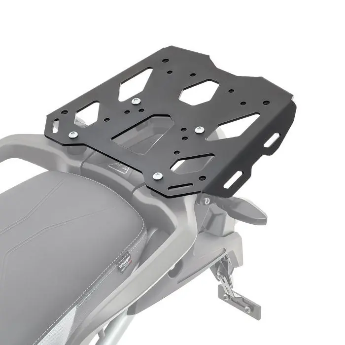 - Topkoffers kunnen worden gemonteerd met behulp van een adapterplaat of rechtstreeks op de bagageplaat (adapter en montageset niet inbegrepen)