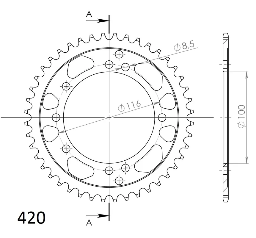 Het tandwiel heeft een tandverhouding van 44 tanden en een 420 kettingcompatibiliteit, wat zorgt voor een optimale krachtoverdracht. Of je nu een ervaren rijder bent of net begint, dit tandwiel biedt de betrouwbaarheid en prestaties die je nodig hebt om je motor op zijn best te laten presteren.