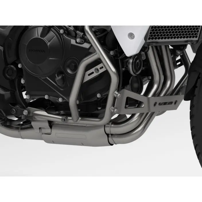 De motorbeschermer beschermt het motorframe bij een val of botsing en geeft de motorfiets tegelijkertijd een verbeterd avontuurlijk uiterlijk. Gemaakt van staal en afgewerkt in Mat Beta Silver Metallic kleur. Dit accessoire is nodig om de Skid Plate op de motorfiets te monteren.