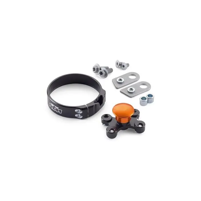 Dit is hoe de Factory rijders starten! De Factory start wordt direct op de vork gemonteerd. Voor de start wordt de vork gedompeld en in de gewenste positie gefixeerd om het zwaartepunt naar voren te verschuiven. Dit voorkomt in grote mate dat het voorwiel bij het starten van de grond komt, waardoor meer tractie wordt geboden en je misschien af en toe een holeshot of twee krijgt.
