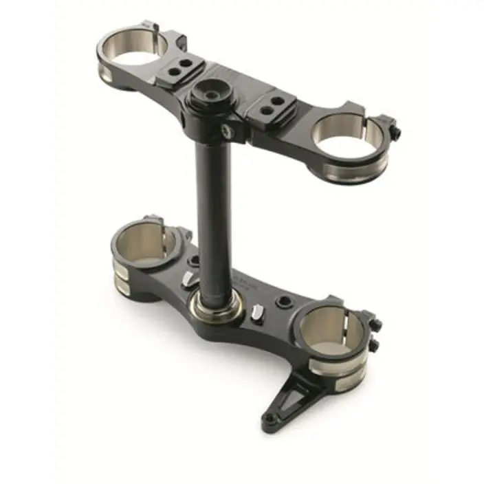 Kleurverschillen tussen de bovenste en onderste kroonplaat kunnen technisch niet worden uitgesloten.CNC gefreesde aluminium kroonplaat. Gemaakt van zeer sterk aluminium. Elegant geanodiseerd oppervlak. Stijver en lichter dan de standaard kroonplaat. Biedt nauwkeuriger handling tijdens harde remmanoeuvres. Betere drukverdeling in de klemming gebied van de vork. Perfect voor gebruik op het circuit