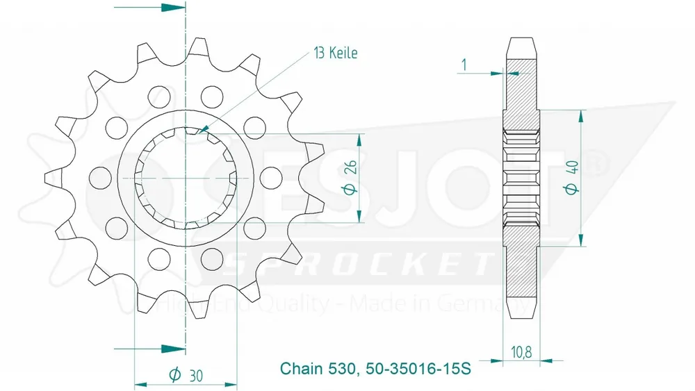 De ESJOT FRONT 15T, LIGHT, 530 is de ideale sprocket voor jouw motor. Dit product staat garant voor kwaliteit en betrouwbaarheid, wat essentieel is voor een goede prestatie van je voertuig. Met zijn lichte ontwerp is deze sprocket ontworpen om het gewicht van je motor te minimaliseren, waardoor je een betere acceleratie en handling ervaart.