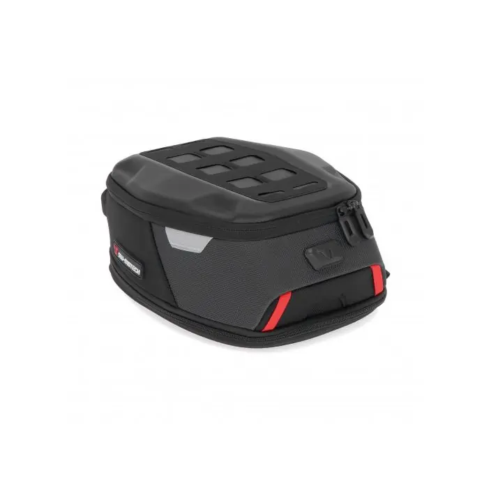 Deze tanktas, met een uitbreidbaar volume van 5 tot 8 liter, is geschikt voor bijna elke stalen tank dankzij het gebruik van een magneetsysteem voor een stevige grip, zelfs op oneffen oppervlakken.