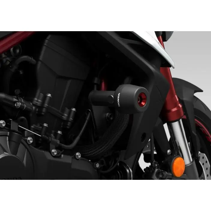De skid pad, voorzien van het Honda logo, vermindert schade aan de kuip bij een val.