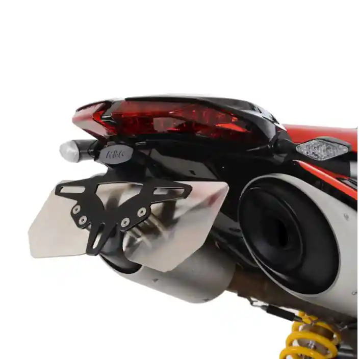 Ontworpen om de vaak grote plastic standaard kentekenplaathouder te vervangen en daardoor het design van jouw motor flink te verfraaien. Zowel de originele knipperlichten als kleine (R&G) knipperlichten passen op de R&G kentekenplaathouder. LED kentekenplaatverlichting is wanneer nodig altijd inbegrepen. De R&G kentekenplaathouder wordt ook wel Tail Tidy genoemd.