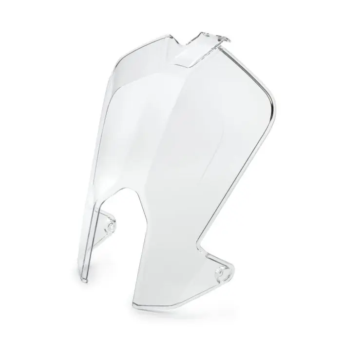 Effectieve koplampbescherming. Zeer stabiel en praktisch onverwoestbaar en als het breekt, splintert het materiaal niet. Vrijwel onzichtbaar, waardoor het unieke ontwerp van de ADVENTURE behouden blijft. Gemaakt van Makrolon, zoals gebruikt op de nieuwste KTM-rallymotoren