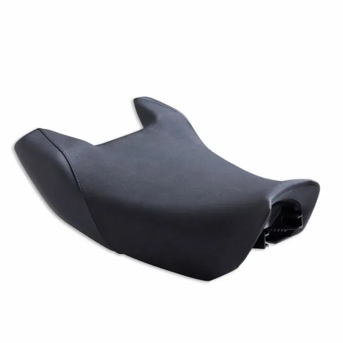 De verhoogde zithoogte in vergelijking met de standaardversie, gecombineerd met de compactere bekleding van schuim en technische stof, biedt maximale ondersteuning en minimaliseert vermoeidheid van de berijder, waardoor de rijpositie en het comfort aanzienlijk worden verbeterd. Het perfecte accessoire om lange reizen te maken zonder moe te worden.