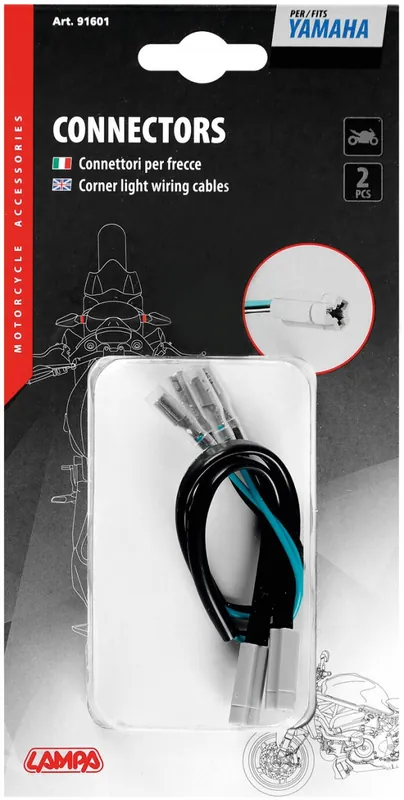 Met de CORNER LIGHTS WIRING CABLES, 2 PCS van LAMPA zorg je ervoor dat jouw motor of scooter altijd goed zichtbaar is. Deze hoogwaardige kabels zijn ontworpen voor gebruik met Yamaha voertuigen, maar zijn ook compatibel met andere merken en modellen. Dankzij de duurzame materialen bieden deze kabels een betrouwbare verbinding voor jouw verlichting.