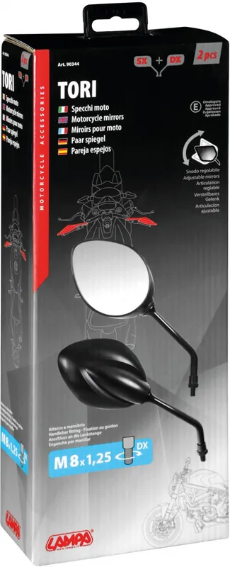 De TORI set achteruitkijkspiegels van LAMPA is de ideale keuze voor elke motorrijder of scooterbezitter die op zoek is naar betrouwbare en functionele spiegels. Met deze spiegels ben je verzekerd van een helder zicht achter je, wat bijdraagt aan jouw veiligheid op de weg.