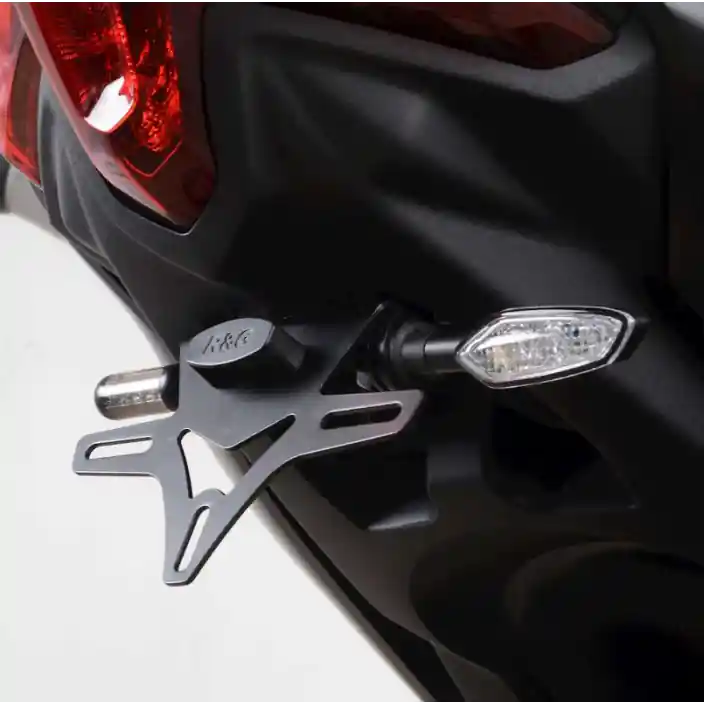 Ontworpen om de vaak grote plastic standaard kentekenplaathouder te vervangen en daardoor het design van jouw motor flink te verfraaien. Zowel de originele knipperlichten als kleine (R&G) knipperlichten passen op de R&G kentekenplaathouder. LED kentekenplaatverlichting is wanneer nodig altijd inbegrepen. De R&G kentekenplaathouder wordt ook wel Tail Tidy genoemd.