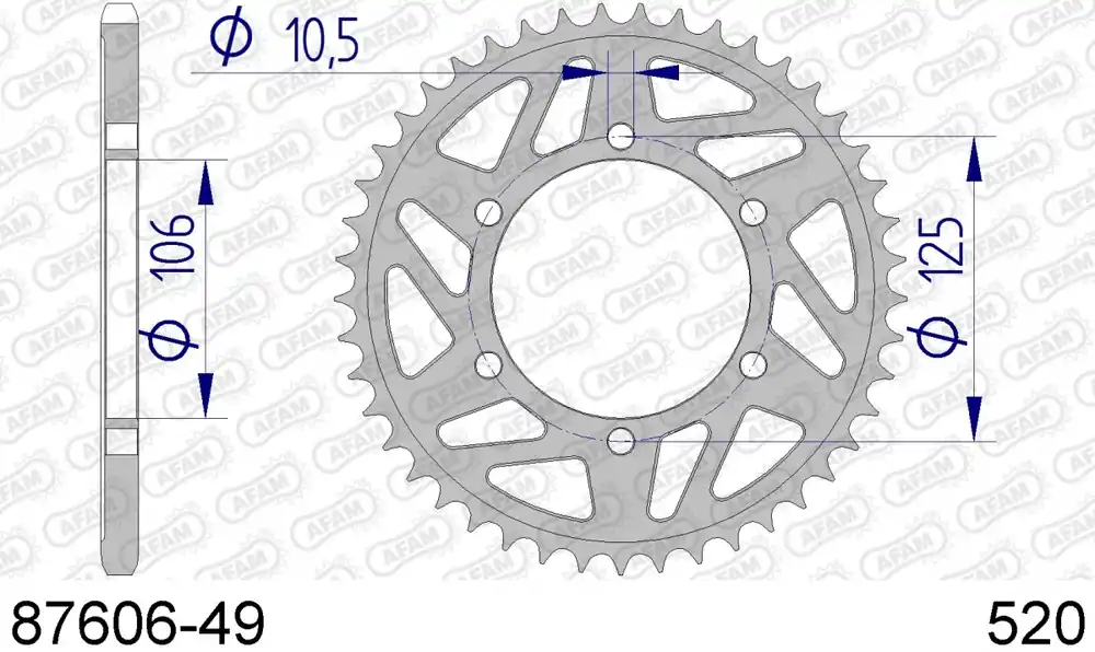 De AFAM REAR ALU 49T, 520 is een hoogwaardige sprocket die ontworpen is voor maximale prestaties. Dit onderdeel is gemaakt van lichtgewicht aluminium, waardoor het een uitstekende keuze is voor motorliefhebbers die zowel snelheid als duurzaamheid waarderen. Met een vertanding van 49T biedt deze sprocket een optimale afstemming tussen acceleratie en topsnelheid.