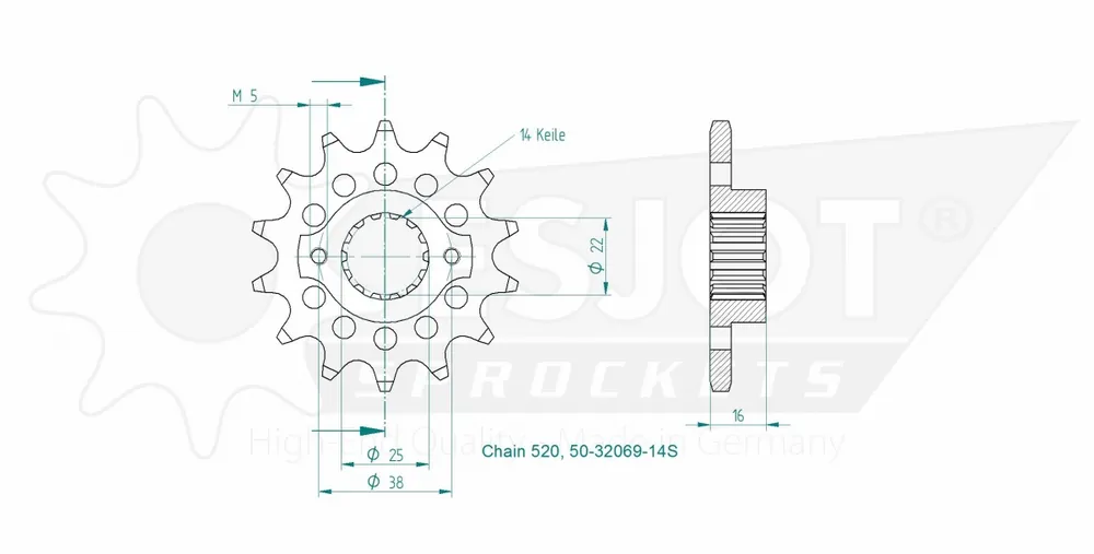 Wat is de levensduur van de ESJOT FRONT 14T sprocket?