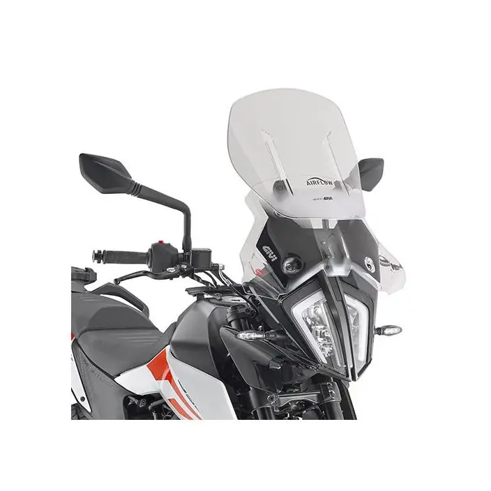 Het AIRFLOW-systeem bestaat uit een transparant hoofdwindscherm, een additionele polycarbonaat AIRFLOW-windscherm en een bevestigingskit (afhankelijk van het motorfiets model).Het in hoogte verstelbare additionele AIRFLOW-windscherm kan in enkele seconden worden aangepast al naargelang de keuze van de motorrijder of afhankelijk van het weer. Het glijdt in 2 sporen van 12cm en kan vastgezet worden waar men maar wil.De speciale vorm van het AIRFLOW-windscherm zorgt voor een aerodynamisch effect dat de turbulentie tegenhoudt. Zo heeft u dus een maximale bescherming tegen wind.Niet alleen biedt een AIRFLOW-scherm bescherming tegen de wind, maar ook tegen de regen. Zo kan u bij hevige regen het windscherm naar beneden verstellen om zo het zogenaamde ‘druppeleffect’ (heel vervelend wanneer het donker is) op uw windscherm te vermijden.Het additionele AIRFLOW-windscherm en de 2 sporen zijn makkelijk van het hoofdwindscherm te verwijderen, zodat u in de zomer enkel met het hoofdwindscherm kan rijden.